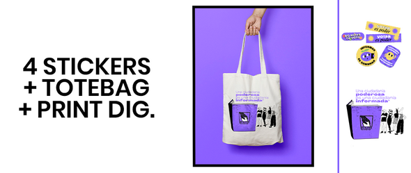 AGOTADOUna bolsa de tela crea y 4 stickers de No botes tu voto.cl. Este es el pack para las /los lolas/os ¡Aún estás a tiempo de serlo! Además, incluímos el afiche digital más bacán de estas elecciones.