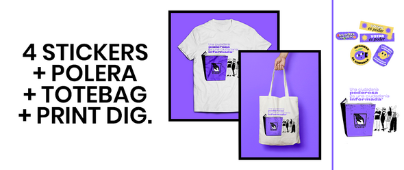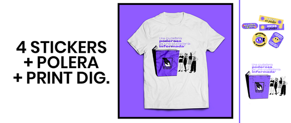 Disponibles 1 de 1Todo, sí, vas a obtener todo. Una polera, la bolsa de tela crea, los 4 stickers y el print digital. Para ti, si creías tenerlo todo, esto es lo que te faltaba.