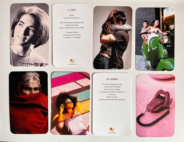 Entre todos forman una historia de amor real, que me pasó a mí, y se pueden leer de manera consecutiva o dejando que el azar-destino te muestre la carta a elegir, en una especie de "tarot o oráculo del amor".